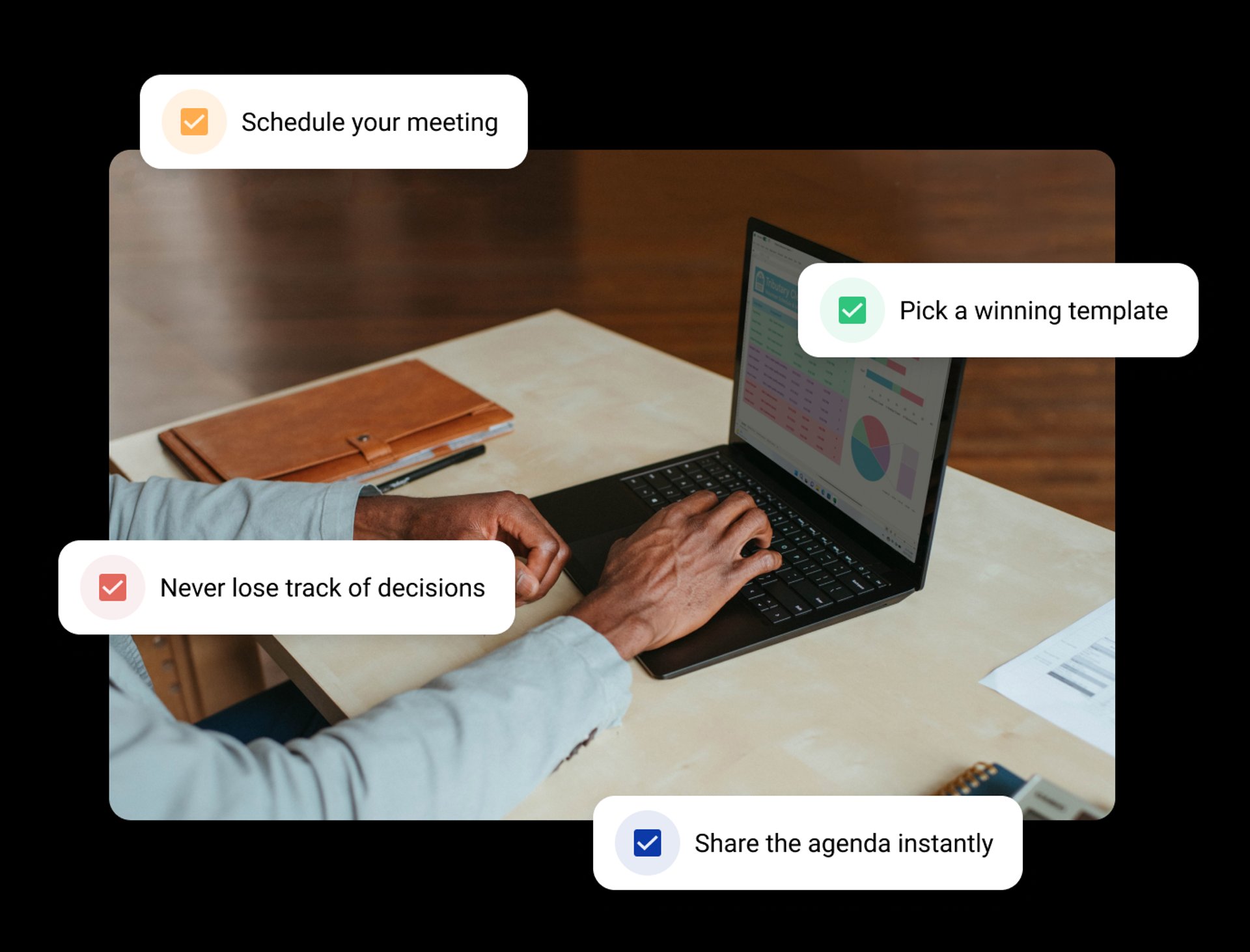 Check out the free meeting templates below to see how you can arrive prepared to your next meeting with the click of a button!